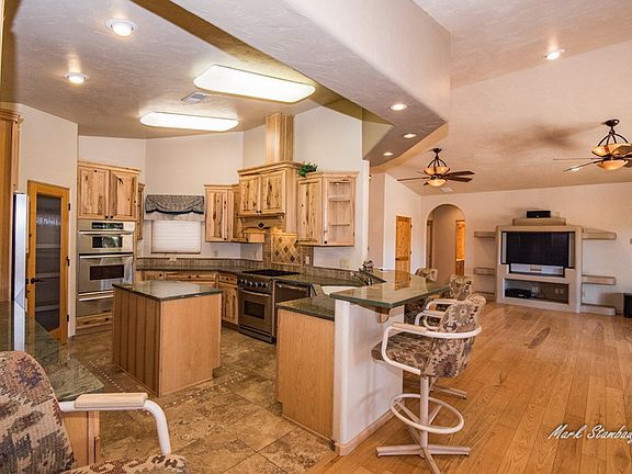 This low maintenance, energy efficient, custom home has an open concept, split floor plan with 4 large bedrooms, 4 baths, 2 living areas and tons of storage space! The large Chef's kitchen is the heart of this home with hickory cabinets, granite counters & top notch stainless appliances. Quality is evident throughout the home with travertine & wood floors, tray ceilings, niches & more. The over-sized Master bath has double vanities, a soaking tub plus a walk in tiled shower and large walk in closet. A covered front deck extends your summer living space with nice valley views. Level entry from the over-sized 3 car garage. Fenced yard in back. White Mountain Meadows is a gated community.