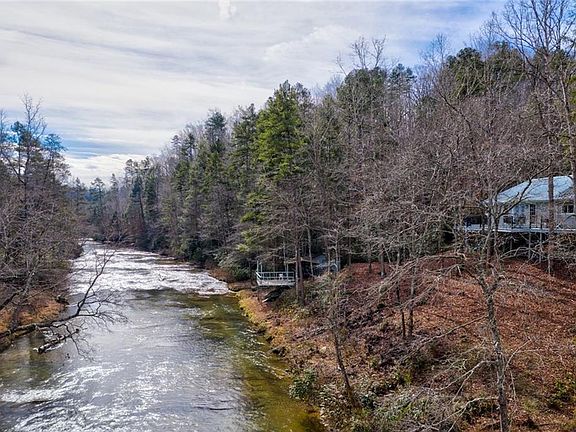 Private river retreat with endless possibilities. The cottage home is maintenance free on the outside with vinyl siding, metal roof, and stone veneer. The inside of this cottage offers a rustic cabin feel with soaring ceilings in the open living area with open beams, tongue and groove ceiling and walls. The stone hearth, oversized maple mantle, and wood stove compliment the rustic charm of the living area. The home provides 2 master suites, each with cedar lined walk in closets, full bathrooms, and french doors that open onto the deck bringing the sounds of the roaring Chauga River right inside. The property boasts an outdoor barbecue area and elevated deck right on the banks of the Chauga. This home can be used as a full-time residence, vacation home, or a short-term rental. Homes on river property like this don't come along everyday so do not miss this opportunity to own a one of a kind property on the beautiful Chauga River!