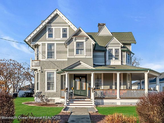 Stunning 5-bedroom Victorian home on ½ acre; only 1.5 blocks to Pier Village/Beach & 3 blocks to the train station & Monmouth Medical Center! Large updated duplex home (3 beds/each side) at rear of property that's accessed from a separate street for privacy from main home! Possibilities are endless...use the Victorian for yourself & rent out the duplex, make a family compound/mother daughter or perfect for many investment uses. Many renovations done including kitchen & bath while keeping the original character of the home including floors, doors, moldings, banister & fireplaces. Features mahogany wrap around porch, butler's pantry, 12' ceilings, pocket doors, full dry basement & attic that can be finished! View the fireworks from the front porch of your dream Victorian home by the sea!