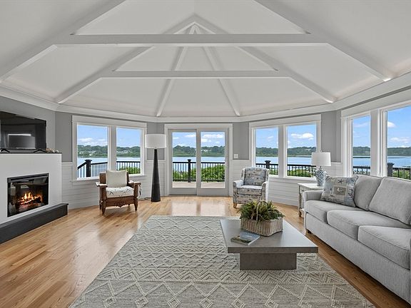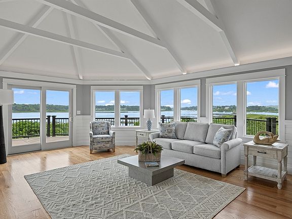 East, South, West.....180 degree water views over the Oyster Pond and the iconic church steeples in town. Dramatic waterfront home has undergone a full and complete renovation in 2024. The great room has commanding water views and steps out onto expansive wrap around deck. The chefs kitchen is equipped with high end appliances and a kitchen island that can seat a crowd. The primary suite offers a generous full bath and a walk in closet. The first level contains a family room, 2 more spacious bedrooms, one with a walk in closet and a separate laundry area. The first level steps out onto a lovely waterfront patio perfect for summertime entertaining. The lot has 180 ft of water frontage which allows for direct access to Oyster Pond for kayaking or paddle-boarding. Sited at the end of a private cul de sac, this lovely home offers peerless views and privacy. On demand Renai hot water heater heat pumps for heating and cooling, whole house generator. Landscaping going in soon!