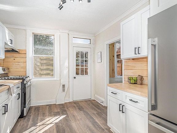 Patio areaDeep stainless steel sinkVinyl plank flooringModern kitchenReplacement windowsStainless steel appliances