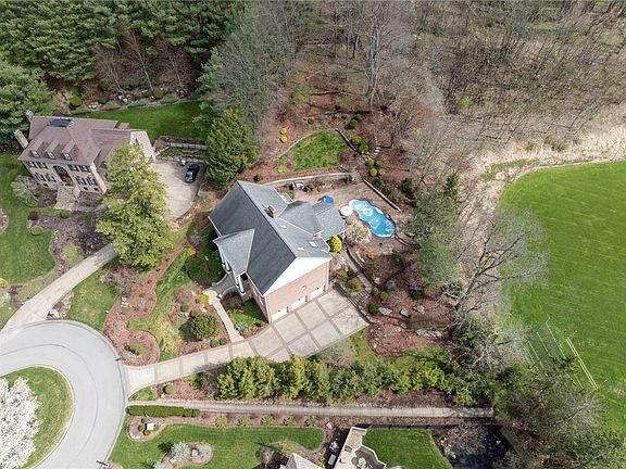 A Real Show Stopper! Pure Elegance! Incredible design features & quality construction is unmatched! Over 3 story Colonial 5 Bedroom Brick Home nestled on a quiet cul-de-sac in Peters Twp. Entry w/Wedding Staircase w/iron spindles, crown moldings, Gorgeous Hickory Hand Scrapped Hard Wd Flooring throughout most of the Main Level, Banquet Sized Elegant Dining Room, Spacious Living Room, Stately Den w/built-in shelving & Boxed Beamed Ceiling, Stunning Kitchen w/Custom Cabinetry, Quartz Island & Counter Tops, Walk-In Pantry, Vaulted Breakfast Room w/Wood Beams, Miele Expresso Bar, Viking 5 Burner Gas Cooktop, Main Lvl Laundry Rm w/custom cabinetry. Sunken Family Rm w/Gas Fireplace & Opens to 18x20 Covered Rear Patio & Private Beautiful Fenced Pool area w/Stone Fireplace, Gorgeous Pool w/water fall features. Master Suite is Breathtaking! All spacious Bedrooms, 3rd Floor Exercise Rm & Full Bathrm. Finished Game Rm w/Stacked Stone Fireplace, Wine Rm, Bar, 3 Car 32x23 Garage w/17x21 Storage Rm.