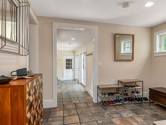 Discover timeless charm combined with modern amenities in Rye, just a short distance to beautiful, sandy beaches. Nestled on a half-acre of open land surrounded by meandering stone walls and woods, this 1750 home was originally a carriage house and has been transformed into an expansive 3,000-plus square foot, 4-bedroom, 2.5 bath home with an attached 2-car garage. The original carriage house charm remains, with stylish and practical renovated spaces that include a 23' x 25' great room with high ceilings and gas fireplace, a large kitchen with stainless steel appliances and walk-in pantry, and a master suite with vaulted ceilings and en suite bath that showcases a classic subway tile shower, marble countertops and a large, farmhouse-style sink. Cognac colored wide pine floors add style and warmth to bright, open living spaces. Other amenities include a large mudroom, laundry on the main level, wood-burning stove, and a room over the garage accessed separately from the main house, offering a private location for an office or guest space. A Mitsubishi 5 Zone Heat Pump system was installed in 2023 and provides full home A/C & heat efficiency. Water tank and electrical were updated in 2015, as well as a new roof and new Advanced Onsite Solutions septic system. The main living spaces are also wired for sound. Located on a quiet country road, this home has been lovingly maintained and is move-in ready. Schedule your showing appointment today!