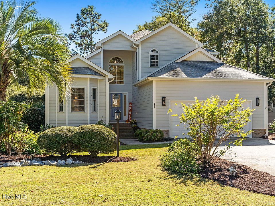 Come see this immaculate 3 bed, 2 bath home located in the highly sought-after gated community of Lockwood Folly. It is perfectly situated on a meticulously landscaped lot w/ a serene pond bordering the left side & curving around the back offering peaceful water views & enhanced privacy. Through the foyer you'll find high ceilings, abundant natural light, & a fresh updated feel. The kitchen w/ breakfast area features solid surface countertops, glass tile backsplash, new dishwasher, & new LVT flooring. Just off the kitchen is a dining area for entertaining guests & enjoying the holidays. The family room offers a tile surround gas fireplace making it the perfect spot to relax or continue fellowship after a meal. The first-floor master has custom built bookshelves & lovely views of the pond. The master bath has been tastefully updated & features a large tiled soaking tub, double sink vanity, & separate shower. The half bath & laundry room complete the first floor. Upstairs, there is an open bonus room, 2 additional bedrooms (1 w/ a walk-in closet), & a full bathroom. There is a floored attic w/ lights for additional storage. Step outside to enjoy the tranquil surroundings from the screened porch or relax on the new deck overlooking the pond & fully fenced backyard. Living in Lockwood Folly means access to an incredible array of amenities, including a beautiful clubhouse overlooking the river offering a full-service restaurant, large (handicap accessible) pool overlooking the water, fitness center (new pool house/fitness room coming soon), banquet/conference room, library, pro shop, golf course, tennis/pickleball courts, rec center, deep-water boat ramp, day dock, fishing pier, & available boat/RV storage. This move-in-ready home offers a perfect blend of modern updates, peaceful surroundings, & resort-style amenities - all in a prime coastal location. Don't miss your opportunity to own a slice of paradise in Lockwood Folly just 3 miles from pristine Holden Beach!