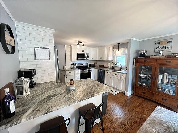 Welcome to 127 Coleman Road in Wethersfield! This home is loaded with charm, tastefully updated, and boasts the pride of ownership. New double wide driveway, beautifully landscaped, a front entryway with a field-stone facade, and stone walkways. Entering the home you are greeted with a functional mudroom and formal living room which has newly refinished hardwood floors. The kitchen is open and has been totally remodeled with shaker cabinets, stainless steel appliances, extra large kitchen sink, granite countertops, and a breakfast bar, which makes this a perfect kitchen for entertaining. The enormous family room ties everything together and is appointed with wood flooring, vaulted ceilings, exposed wood beams, tons of natural lighting, sliding glass doors leading to the deck/backyard, and has access to the first floor laundry and half bath. The large rear deck offers the perfect location for entertaining and relaxing and overlooks the cleared, level, and large fenced-in backyard! The Second Floor of this home offers 3 bedrooms and a remodeled full bathroom. ADDITIONAL FEATURES INCLUDE: Gas Heat, gutter guards, new and refinished hardwood floors (2019), fenced in yard, remodeled laundry room and kitchen (2019), and bathrooms, vinyl windows, and newer brick walkway. Close to everything, including fine dining and shopping on the Silas Deane Highway, just minutes from Old Wethersfield, and 15 minutes from Downtown Hartford. Available September 15!