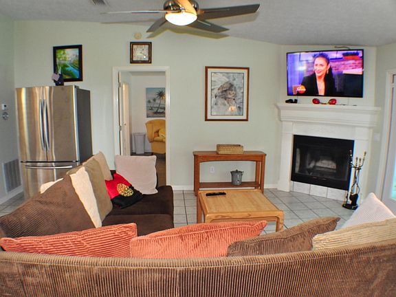 Location, Location! This ideal Gulf Highlands home is walking distance to Frank Brown Park and a minute drive to Pier Park! This 2BR/2BA Ledman built home includes a screened-in pool, 1 year old roof, and an updated kitchen with new soft-close cabinets, quartz counter tops and stainless steel appliances. The home features a split-bedroom floor plan, tile floors, walk-in closets, fireplace, 3 sets of French doors, and a two car garage. Clean and move-in ready, this home is not in a flood zone and there is no HOA! Great home in a quiet, family-friendly neighborhood! All info is approx. and must be verified by Buyers if important.