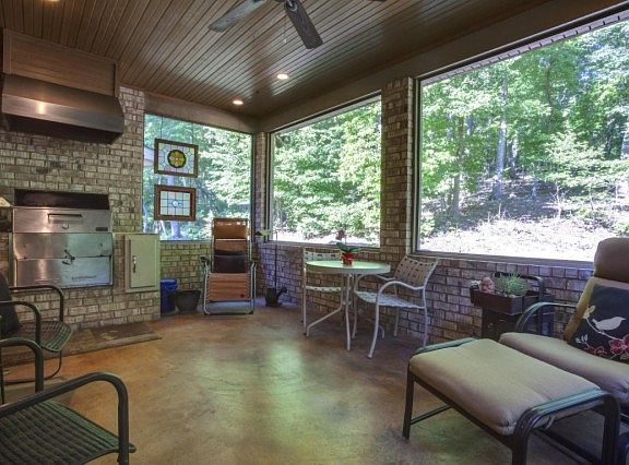 If you are looking for peace, serenity, and solitude, this is the place for you!4.82 acres, custom built one owner home nestled in the woods w/two rainwater ponds. Total privacy and yet in an upscale architecturally restricted lakefront community 9' ceilings on main. Slate entry with huge window overlooking a beautiful yard. Gorgeous views from all windows of a private wonderland ''treehouse in the woods''. Purified water in the kitchen, huge pantry, propane for gas FP & Wolf gas range. Granite counter tops, island bar, refrigerator. Kitchen open to GR w/massive slate FP with gas logs. Large MBR on main w/2 unique master baths w/adjoining shower having dual access and his/her Closets. Central vac, screenless screens, security system, extremely well insulated (average utilities $175/month) $30,000 spent on concrete driveway. Quality through out. Fabulous screened porch w/tongue & groove ceiling and charcoal smoker/rotisserie. Moisture scrubber Zeus in crawl space installed by Thomas of Thompson Waterproofing Co. Walk-in crawl - 4.5' to 5'. Oversized 2 car garage. Lawn art does not convey. Community boat dock.