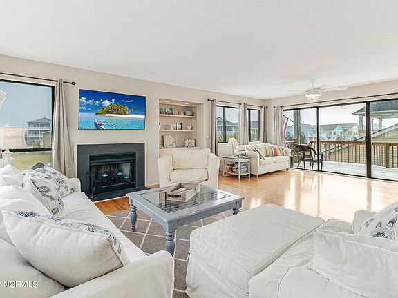 ICW views abound with this 4 bedroom, 3 bath home situated on a quiet street at the much sought after Holden Beach. With Beach access at the end of the road, you will enjoy the views and spaciousness of this 2 story home. Enter into the light and airy open floor plan to a living room with built-ins for all your treasures; an area with a table for family puzzles or games; dining area and large open kitchen. The kitchen has plenty of storage and a small island for prep space. The upstairs primary en-suite has an oversized bedroom, sliders to the open, deck and bath with walk-in shower. Along with the primary bedroom, two other bedrooms and one bath are located on this floor and have access to the upper deck. One other bedroom and bath are located on the first floor. This desirable home has new exterior paint; all new decking and solar panels to offset your electric bills. Two full decks allow plenty of space to relax with your morning coffee or your favorite drink to enjoy the salt air and views of sunrises and sunsets. This home also features a two garage car with space to store all your beach toys. This beautiful house is just waiting to be your very own beach home!