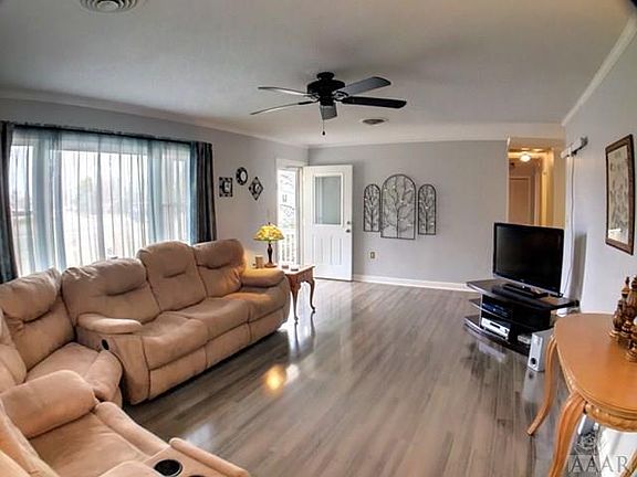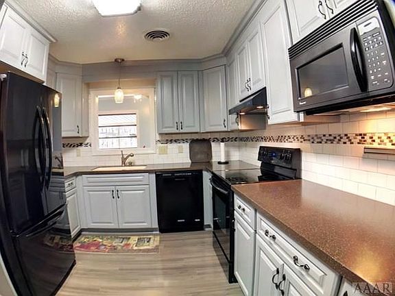 Wonderful water front home READY for you! Updated in 2014 including flooring, fixtures, kitchen, bathrooms! Beautiful laminate flooring with coordinating paint colors flows through the living room, dining and sunroom. This kitchen is amazing and features solid surface counters, soft close cabinets, tile back splash & upgraded appliances. Master bedroom has adjoining dressing room (seller's studio) over looking the water, master bath w/tile flooring. Fenced back yard, covered deck, attached workshop