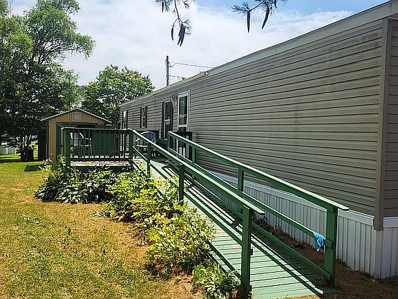 Located in Creekside mobile home park. Quiet setting. Features new furnace, A/C, shed.