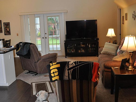 Move-in ready, light and bright home is ready for new owners! This home is in a wonderful community that is close to everything but feels like it's in the middle of a tree-filled nature preserve. The 55+ active community offers a clubhouse, tennis, shuffleboard, screened pool, and fantastic walking trails. The home itself has almost all new flooring, 7-year-old AC and roof, and newer Hardie Board exterior. The list of new items includes new appliances, master shower, front door, granite countertops, screened garage door, toilets, and lights & ceiling fans. This home has volume ceilings, is well-maintained, and backs up to one of the many walking trails.HOA takes care of lawn maintenance, paints house and even covers cable TV.