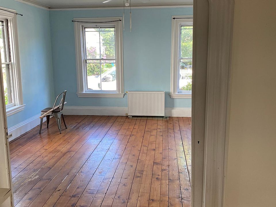 Newly renovated floor-level apartment in historic home, walking distance to downtown. Bright and sunny with hardwood floors throughout. Open concept kitchen, connected to living room by large French doors. Private porch; spacious, tree-lined backyard. Please note this unit is currently undergoing renovation and will be available on September 1 Owner pays for heat, water, snow plowing, trash removal and lawn care.