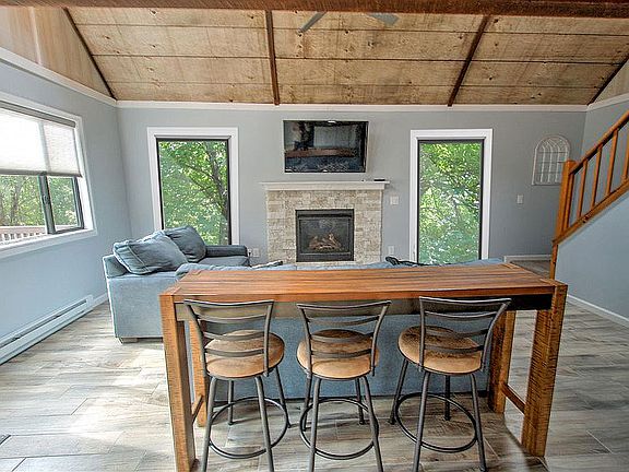 Only 2 hrs from NYC and Philadelphia, located in Tanglwood Lakes, this totally renovated home offers 3 bedrooms, 2 baths, with lake rights to Lake Walllenpaupack,and within walking distance to Paupack Hills Golf & Country Club. This home is located in a quiet cul-de-sac, is move-in ready & features new: flooring, lighting, kitchen cabinets, backsplash, granite counters & SS black appliances, renovated bathrooms w/new fixtures, tub/showers & cabinets, living room with stone fireplace, new skylight, new picture window , a one car garage, new hot water heater, pellet stove, new roof & most furniture included!Great value!!!!!