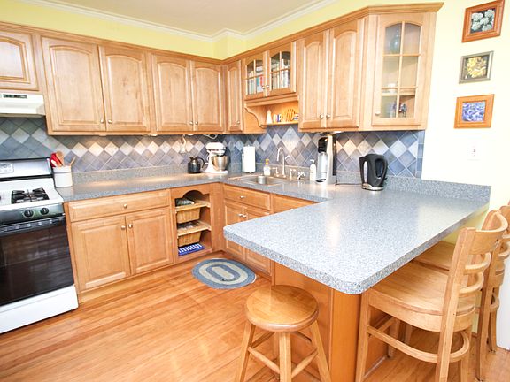 Beautifully updated home in the "Highlands" district of Lowell. Two full updated bathrooms, modern kitchen with breakfast bar and tile backsplash, wood flooring throughout. Third bedroom has private full BA. First floor office, walk in butlers' pantry with extra sink off kitchen, open concept dining area with built in china cabinet. High ceilings and crowne moulding throughout. Mudroom entry off kitchen to rear porch. A pleasure to view. Garage is in fair condition, used mostly for storage, needs repairs. Completely fenced in easy to maintain yard, corner lot, off street parking.