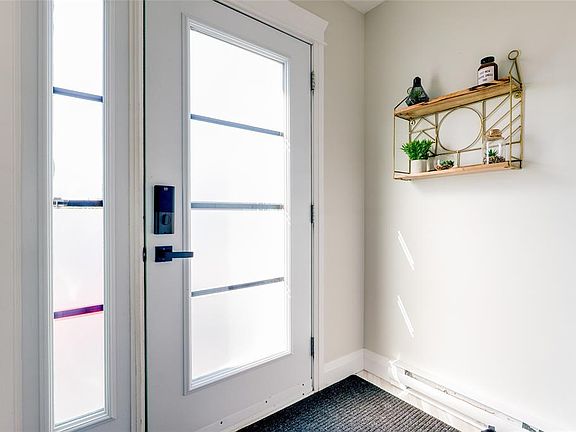 Enclosed foyerModern open concept designVaulted ceilingsStunning accent wallCozy propane fireplaceWhite cabinetryStainless steel appliances