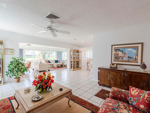 Enjoy the beautiful panoramic golf course views in this bright and cozy 2 bedroom 2 bath well-maintained home located in the lovely City of Atlantis. This home features a spacious primary bedroom with a walk-in closet, vanity, and dual sinks. The oversized Florida room has impact glass windows offering lots of natural light to the entire home. The community pool is shared by only 17 homes and is across the street. The city of Atlantis features 2 golf courses with optional memberships, tennis, pickleball, and basketball courts. Feel safe and secure with 3 manned gated entrances plus its own police department. There's a park with a playground and a splash pad, a picnic area and a clubhouse for parties. This family friendly golf cart community has gatherings throughout the year to bring everyone together. Close to shopping, I95, and the beach is just a few miles away.