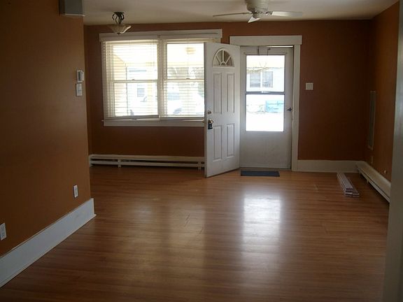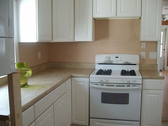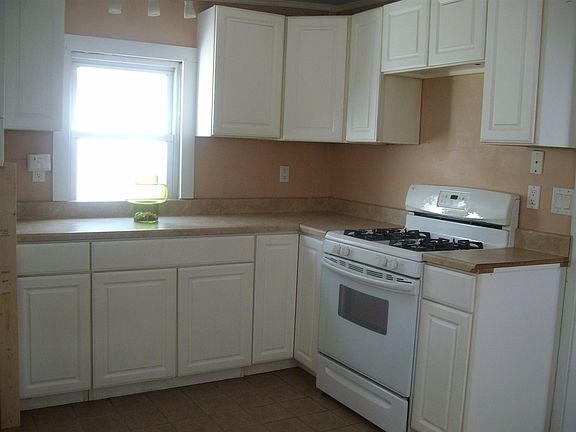 This ranch home offers an eat-in kitchen with newer cabinetry, stackable laundry, upgraded full bath and living room. There are two good sized bedrooms plus a third smaller room with a closet that can be used for a bedroom, computer room or tv room. The living room and kitchen have newer laminated flooring. There is carpeting in the bedrooms and ceramic tile in the full bath. There is off street parking and a detached one and a half car garage. The house is heated by economical natural gas baseboard heating. The roof is only two years old and the gas hot water heater is only one year old.