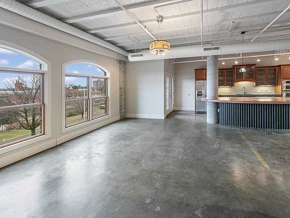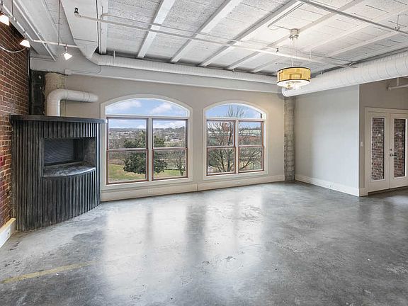A unique and distinct design duo of a traditional brick exterior combined with a modern, urban interior. Located in Downtown Maryville, this cool loft has interesting design elements such as concrete floors, exposed brick, large curved windows and an incredible kitchen island! With gated, covered parking, this unique space has a large, open living area with views of the greenway and fireplace, ample natural light, large island, and stainless appliances. Each bedroom has its own bath with walk-in shower and walk-in closets. Located within walking distance of the greenway, shopping, dining, and Maryville's new state of the art library, this loft offers the best in location and style!