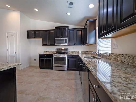 Nestled along the Carson River in a beautiful development this gorgeous single-story upgraded home with 4 bedroom, 3 bathrooms, 3 car garage with RV Access/Parking has lots to offer.The desirable floor plan boasts a great room concept that is highlighted by vaulted ceilings and tile flooring throughout. The kitchen has a large granite island with breakfast bar, full pantry, and ample cabinet space.