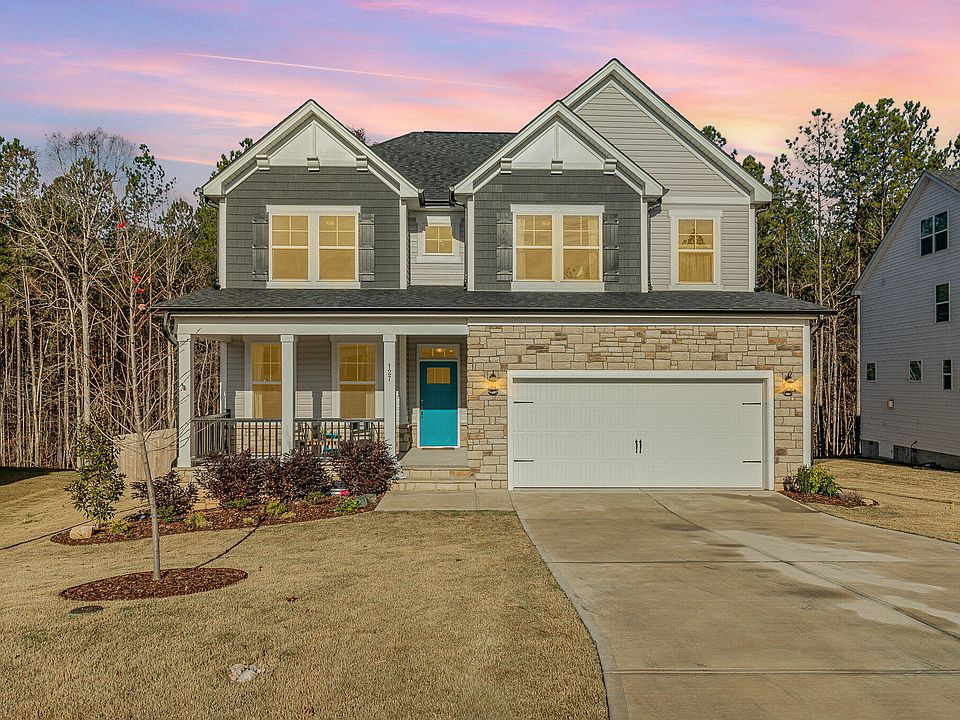 Welcome to 127 Echo Canyon Drive, a stunning gem nestled in the heart of Clayton, NC! This captivating home, less than a year old, graces a peaceful cul-de-sac offering serenity and privacy. Boasting 4 bedrooms, a delightful bonus area and 3 full bathrooms, this home is designed to exceed your expectations. With a convenient first-floor guest suite, this residence ensures comfort and convenience for all. The home has 2592 square feet of modern living space, perfectly crafted to cater to your lifestyle needs. Embrace the art of entertaining in the open kitchen and family room areas in addition to the adjacent covered back porch. There is a 2-car garage, a haven for your vehicles and storage needs. Step outside to the covered back porch, where tranquility meets nature—a serene retreat offering a mesmerizing wooded view, ideal for unwinding or hosting outdoor gatherings. Beyond the charms of this exquisite home lies the growing, vibrant community of Clayton, NC. Discover local boutiques, delectable dining options, and explore the scenic beauty of the area's parks and trails. Take advantage of Clayton's renowned schools, recreational facilities, and a thriving cultural scene. Embrace the charm of a close-knit community while relishing the convenience of easy access to major thoroughfares. Don't miss the opportunity to make this remarkable residence your new home sweet home!