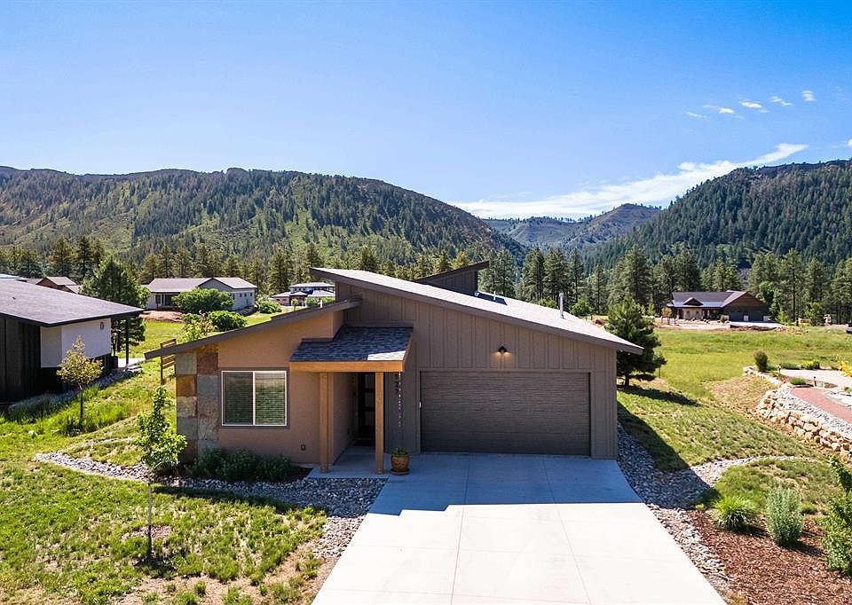 This is a turnkey opportunity in Edgemont Meadows for easy Colorado living. Completed in 2021, this single level home is both functional and beautiful with high end finishes throughout that have been impeccably maintained. The main living area includes the kitchen, dining room, living room featuring a high tongue and groove ceiling that fills with natural light, and solid oak floors throughout the entire home (except the bathrooms and laundry room). The kitchen is complete with alder wood cabinets, stainless steel appliances, under cabinet lighting, granite countertops, a spacious pantry, and a large island for added counter space. The living room has a gorgeous gas fireplace with a rock surround. Step outside to the covered back patio for amazing mountain views, and expansive outdoor space as this lot backs up to Edgemont Meadows HOA owned open space. The primary bedroom also offers a walk-in closet with built-in shelving as well as a private bathroom providing a dual quartz counter top vanity and walk-in shower. Another shared bathroom is centrally located with a tiled shower and an extended vanity. Additional storage can be found in the laundry room which doubles as a mud room near the door to the garage. Perfect for two cars, the garage also offers extra gear and household storage. Edgemont Meadows is less than 7 miles away from downtown Durango with neighborhood amenities including a market, Florida River access, tennis courts, trails, and more. Don't miss out on this opportunity to enjoy Durango living in the tall pines. The sellers are willing to sell the furniture in the home, and have only lived in it a few months a year since it was built. It really lives and feels like a brand new home.