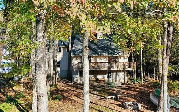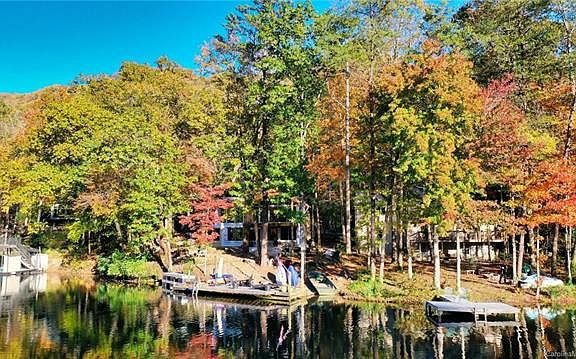 Use your imagination for design and curb appeal ideas to create the quintessential lake home of your dreams. This non-POA property features wood tongue and groove ceiling, stone wood-burning fireplace, private balcony off the upper bedroom, and full-length deck overlooking the lake with a retractable awning over the dining area and wrap around entry from the front. Skylights in the Cathedral ceiling flood the great room with abundant natural light. Plenty of room to spread out in the bonus room over the Garage. Basement offers ample room for a workshop or design your own entertainment space. Enjoy this very rare find with level lake access and a private dock. Western views allow for vibrant sunsets over the lake. Welcome home! 48 hour showing notice