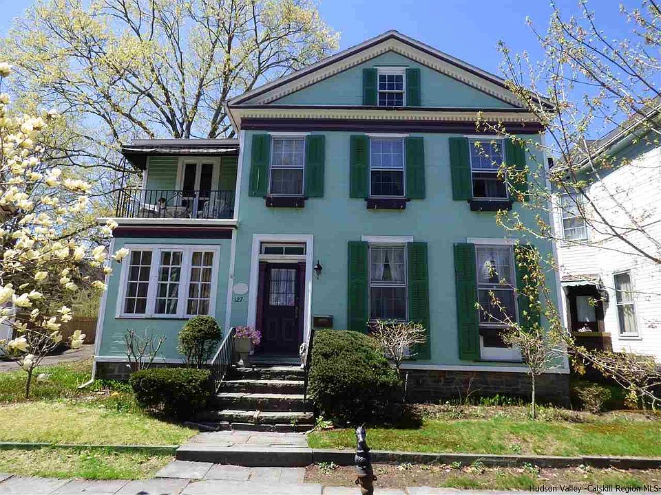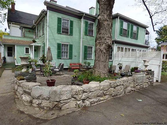 Big space and big style in the heart of Uptown Kingston: This historic side-hall Colonial sits on an oversized lot on "Doctor's Row" on Fair Street, one of the most sought-after locations in Uptown and easily walk-able to all the restaurants and other attractions in the Stockade District. The house features a wonderfully distinctive ground-floor layout with large rectangular living and dining rooms, each with its own fireplace, plus an unusually large kitchen and breakfast room with yet another fireplace - this one frequently used by the current owners. Front and back staircases, built-in bookcases, spacious sleeping porches on both floors, and hardwood floors throughout add to the rare architectural character. The large fenced lot features a gated driveway with room for plenty of cars, a 2-story 2-car garage building that potentially could be converted to studio or additional living space, and a shaded bluestone patio perfect for entertaining.