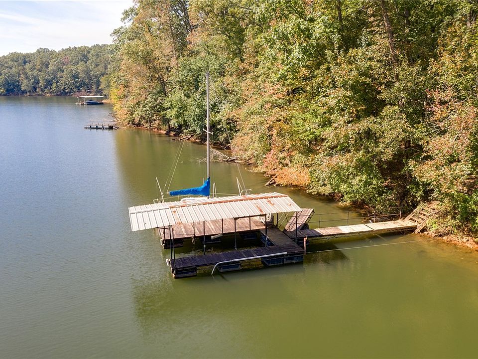 Beautiful 1.01 acre (twice the size of the average Lake Hartwell lot) building lot with Covered Slip dock in place! Concrete cart path to the lake with a nice turnaround for your convenience. The corps line is so close and your lake view would be beautiful from your dream home! Perfect dock location provides a calm, private cove for swimming and hanging out on your dock. Deep year-round water - this property has it all - endless possibilities! Dwelling sold AS IS - has little value. Enter at your own risk. Fantastic location by lake just before Buoy T-14 and very convenient to I-85! Don't miss this opportunity! Survey on file. Buyer/ Buyer's agent to conduct their own due diligence and responsible for verifying all information including but not limited to location and inspection of existing septic tank. Survey uploaded in supplements.