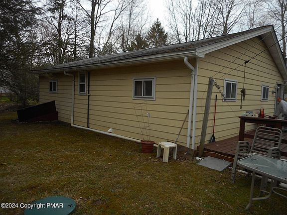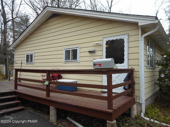In time for Summer...Buy a Home. Affordable Ranch on Level Lot. Open Living/Dining/Kitchen room with a Brick Face F/P at the far end of the home. Located on a Township Road w/ NO DUES-HOA. Large Out building & a shed complements the back yard. Side rear deck. Hurry with your ideas & dreams of making this home special. Estate Sale no Seller's Property Disclosure. Oh! by the way site has a Paved Driveway. Location is great close to Pocono School System, Shopping, Sanofi, Casino and Rt. 940 a Major shopping location. Extra Special REAL ESTATE TAXES are only $1,708.34 a year. Couple this with NO HOA it's a WIN WIN.