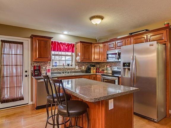 Stunning!Wood floors in main living area. Eat-In Kitchen w/ Island. Stainless appliances Concrete/Brick patio, level yard