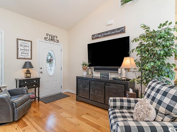 Charming 3BR-2BA home with great curb appeal in Little River Estates! Beautifully maintained & move-in ready! The open floor plan is bright & airy with plenty of natural light. Upon entering the front door, you will immediately notice the wood floors throughout the home. The kitchen features granite countertops & granite backsplash, SS appliances & a breakfast bar. Located off the dining area are sliding doors leading to a wonderful screen porch and extended patio. The large backyard has a back & side fence for privacy. An amazing list of upgrades since August 2021: lowered kitchen counter, new granite countertops & backsplash, plantation shutters throughout, window tinting on front windows, deco concrete on the front porch, sidewalk, screened porch & patio, upgraded outdoor & indoor light fixtures, new landscaping with rubber mulch, new landscape lighting and the exterior trim has been freshly painted. Little River Estate is located 5 minutes, just 1.4 miles to the Cherry Grove Marina at Little Neck and 11 minutes, only 4 miles to all the fun on Main Street in North Myrtle Beach. Many great restaurants, plenty of shopping, medical services & first-class golf courses are nearby. Easy access to Routes 90, 9 & 17.