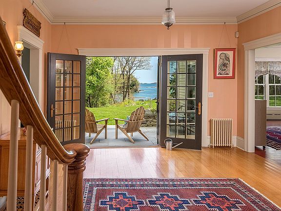 This historic farmhouse was carefully restored and expanded in 1999 and the architecturally designed kitchen wing/great room was completed in 2005, including a state-of-the-art kitchen that is truly stunning. The kitchen is open to the sitting and dining areas with views of the yard and Casco Bay beyond, an ideal space for family gatherings. Privately located on 2.9 acres with over 1000 ft of waterfrontage and a dock, the setting offers peaceful water views and easy small boat access to nearby anchorages.