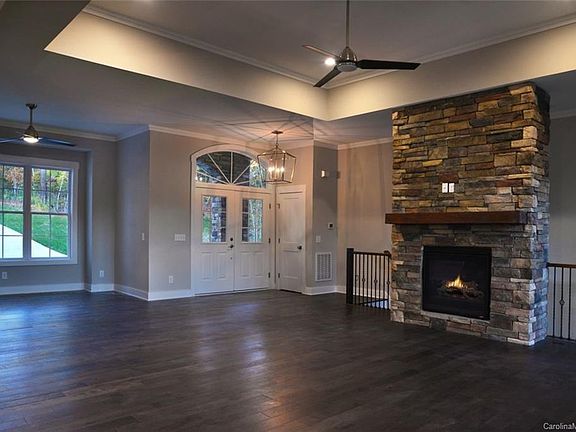 Newly Built! Beautiful open floor plan with 4 bedrooms, 3 1/2 baths. This floor plan by Donald Gardner (the Silvergate), is modified somewhat. The plan is reversed, master extended toward the lake. Master bath features a shower and closets are larger. The "study" has been opened up and turned into a dining room. Gutters feature leaf guards for low-maintenance lake living! All drawers and cabinets are soft-close. Mantle above the fireplace is over 150 years old and came from an old steel mill in NC that went out of business in 1869! Basement rec room has an option to install a kitchenette/wet bar (the wall that juts into the storage area has plumbing, sewer, and electrical right behind it). The basement features 505 ft storage room that is heated/cooled but unfinished. 800 square foot boathouse and irrigation included.