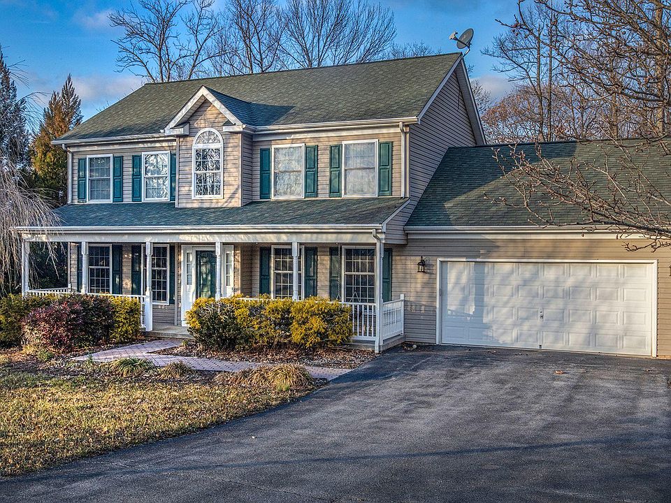Unique two story home nestled on 1 acre wooded lot with central location. Home features 4 bedrooms, 3.5 baths, open kitchen area with deck, large master and two potential office spaces. Finished basement perfect for entertaining or in-law area. Fenced back yard with exceptional storage building in rear with power and huge loft, would make a great playhouse or workshop area.