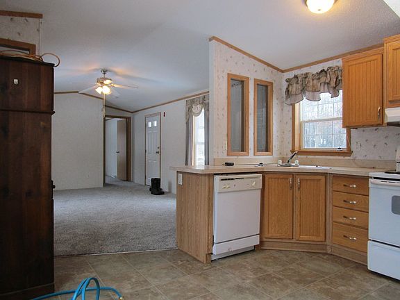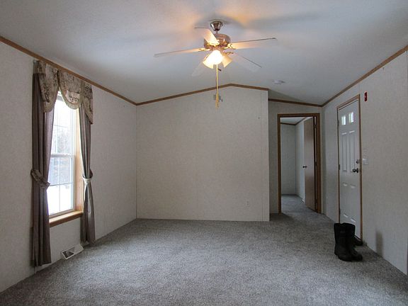Two bedroom two bath 2007 mobile home on three acres in a great rural location. Eat-in kitchen with lots of cabinets. One bedroom with half bath. New carpet, & tie downs. Very pleasant setting.