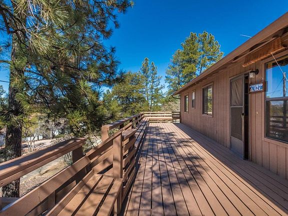 Just Reduced! Nice 3 Bedroom 2 bathroom home with large wood deck which has views of Granite Mountain. Vaulted ceilings thru out with open floor plan. Back patio looking out to beautiful, large granite boulders and pine trees. Great opportunity for a primary home or second home. Close walk to downtown court house, whiskey row, library and downtown Prescott shops & eateries.Don't want to go up the stairs, go around the side by way of the gentle slope up to kitchen door in back.