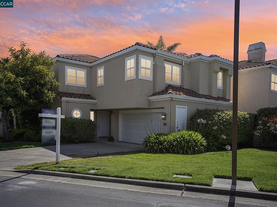 Spectacular Costa Brava living! This contemporary Mediterranean style single-family residence has been refreshed throughout and features a great floor plan with dramatic high ceilings. 3BR with a large primary bedroom with luxurious remodeled bathroom. The beautiful backyard has been planted with mature flowers and can be enjoyed year round. The home features an oversized driveway with 2-car garage. The Costa Brava HOA includes a large community swimming pool and hot tub. Near top ranked schools, parks/trails along the bay and lagoons. Google shuttle & 7-minute walk to S.F. Ferry.