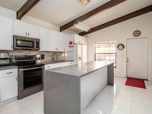 Look no more! Modern and upgraded 2 bed/2 bath villa with an open floor plan. This home is looking for a buyer with exquisite taste in the active 55+ community of Carriage Hills. Open the door to a spacious courtyard and the front door leads you to a beautiful and renovated kitchen with stainless steel appliances, a quartz huge waterfall aisle, modern matte white cabinets with additional drawers for storage. This home boasts updated baths, 32 x 32 tile in 100% of living area, a spacious master bedroom with an ample walk-in closet, a tiled and screened patio and a laundry closet. 6 y/o A/C and 5 y/o roof. The community has 3 pools, gym, jacuzzi, sauna and much more. Located 5 minutes away from the Hard Rock casino and the Florida Turnpike. This is a must see!!