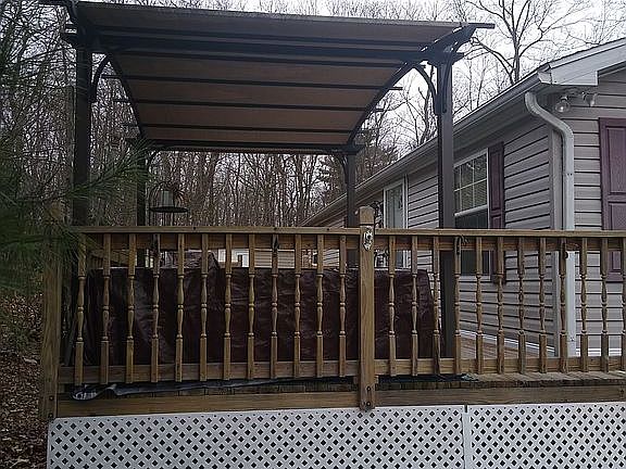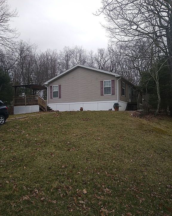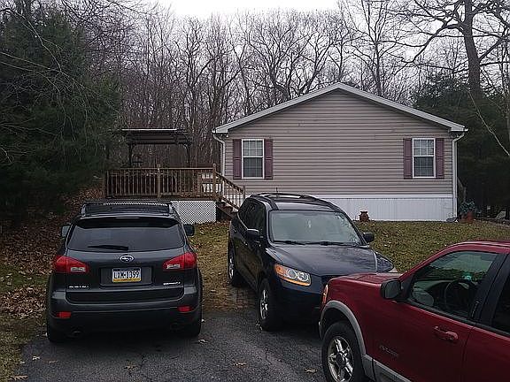 Nice house in quiet community.In the beautiful Pocono mountains. Easy commute to NYC and Philadelphia. Ceiling fans in living room,master bedroom and second bedroom. Master bedroom with master bathroom Has standup shower,garden tub and his/hers vanity. Master bedroom also has walk-in closet. The other 2 bedrooms also have closets. Has eat in kitchen. Has walk in pantry and lots of cabinet space.Has a big deck for entertaining guests. Has kerosene/oil heat and central air. House has 2 storage sheds. One has electric in it and can be used as a work shop. Has parking for 4 cars. Lot rent is $465 a month...Lot rent includes water,sewer,trash removal,road maintenance and road plowing....""NO RENT TO OWN AND NO OWNER FINANCING SORRY..... CASHIER CHECK OR CASH ONLY""