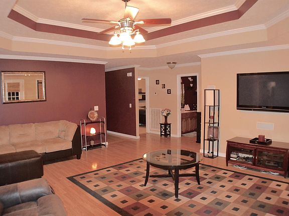 How often do you find 4 bedrooms, trey and double trey ceilings and built-in speakers in the living room and master? Not to mention they are leaving all kitchen appliances and the washer/dryer. The yard has beautiful landscaping. HVAC is 1 year old!