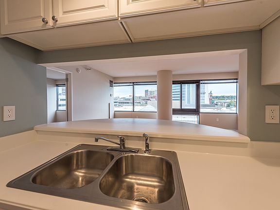 Chic totally renovated, NYC style apartment at the Biltmore, a luxury high-rise condo with 24 hour concierge, conveniently located in the center of Downtown Stamford. This sunny apt. was freshly painted, has gleaming hardwood floors. The kitchen has a new range, Corian counters, new SS sink and faucet, LED overhead lighting & great breakfast bar. The modern bathroom is NEW- has a heated floor with porcelain tiles, Kohler fixtures, glass shower doors, subway tile, lighted mirror. MBR has a huge walk-in closet with a custom CA Closet, adjustable shelves. The Biltmore amenities include a free shuttle to the train station, NEW 2000+ sq ft state of the art fitness center, club room, lovely green outdoor courtyard on the 4th floor. The 24 hour concierge greets you and your guests in the gracious lobby. Excellent credit & references required. Garage parking is available at approx. $ 98 per month. No pets allowed, no short term rentals. Tenant is responsible for one time $295 moving fee. Fantastic downtown location steps to shops, fine dining & entertainment.