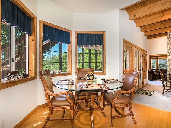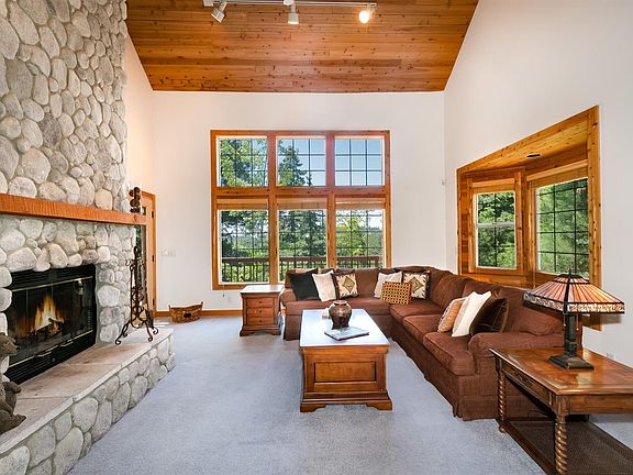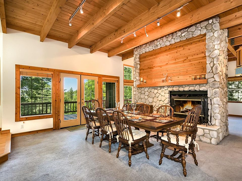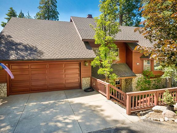 Conveniently located in between the lake & Lake Arrowhead CC in quiet neighborhood. So much rustic architecture to rave about. This is a showcase mountain home to brag about to your friends. Level two car garage with plenty of parking. Enter large open living room & dining separated by double sided fireplace. Fireplace design has rustic river rock all the way up to T&G ceiling. Windows & doors are framed by naturally rustic knotty pine with endless views of forest. Spacious kitchen with white cabinets, hardwood floors & newer stainless steel appliances. Large decks for hosting summer bbq's. Master bedroom is oversized with brick fireplace & private deck looking at forest. Two additional large guest bedrooms. One of the guest bedrooms has additional loft & en suite. Rustic finishes on this property are quality & timeless.