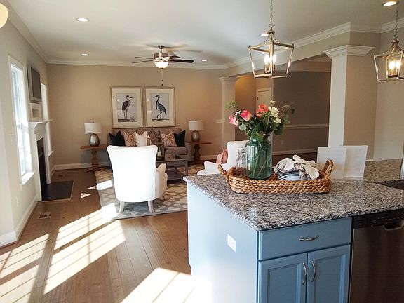 FENCED Yard! This wonderful home features a first floor master suite with a soaking tub and walk-in closet. A soaring foyer full of natural light greets you with an open floor plan and hardwood floors in the first floor living areas. The dining room is open to the family room. The kitchen features a large, eat at island, 5 burner range and microwave hood. There is an extended breakfast nook area off of the kitchen and an open family room with a gas log fireplace. There is also a 2nd bedroom, laundry room with mudroom, and covered porch on the 1st floor. Upstairs you will find a HUGE bonus room, 2 bedrooms, and a full bath. The Belhaven also includes loads of unfinished storage space and a 2-car garage.