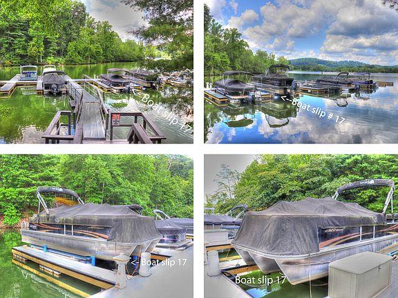 Absolutely Breathtaking Mountain, Lake & Wooded views from this magnificent home. Deeded Boat Slip 17 included w/ boat lift & electric to slip. Soaring 14' Beamed Ceiling- floor to ceiling Stone Gas Fireplace - Brazilian Amendoim Hardwood Floors- Porcelain Tile-Custom Cabinetry, Center Island & Built-in Desk in Kit.- MBR w/Bay Window facing the views-trey ceiling-porcelain tile walk-in shower-dual sinks-2 closets-2nd BR or Office on Main w/12' coffered ceiling-Keeping Rm or Dining Rm.-main level Laundry-Big Bonus Rm./BR offers dormer windows & separate Samsung heat pump-Spacious Lower Level features wet bar w/granite- space for game & pool table & sitting area & Full Bath- BR w/private bath. Video @ https://youtu.be/a92lcjg5UQ Boat slip video @ https://youtu.be/L4OoeUKJKs0