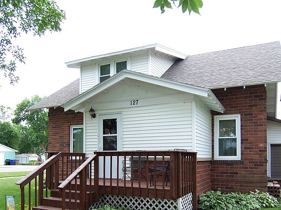 3 bedroom, 2 bath updated 1.5 story home located across from the ball fields and 1 block from school. Large lot with potential to build on west end (app. 83' x 90'). New shingles in 2014 and all new windows in 2009. Many other updates including remodeled kitchen and baths. 2-stall garage with additional golf cart storage.