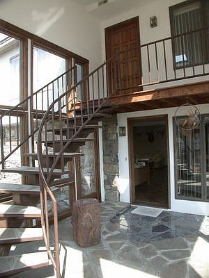This totally custom home must be seen to be appreciated. 3BR, 2.5BA Contemporary sits on a beautifully landscaped yard. The gourmet kitchen has a Viking stove, granite counters, cherry cabinets & dining area. The master has separate sitting room, master bath with marble, granite, jacuzzi tub & separate shower. Custom atrium with passive solar heat, hand made steel spiral stairs, granite & Connecticut stone fl. Walk-out basement with 1/2 bath, plumbed for kitchen and roughed for gas/wood stove.