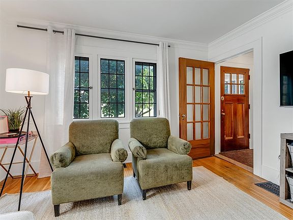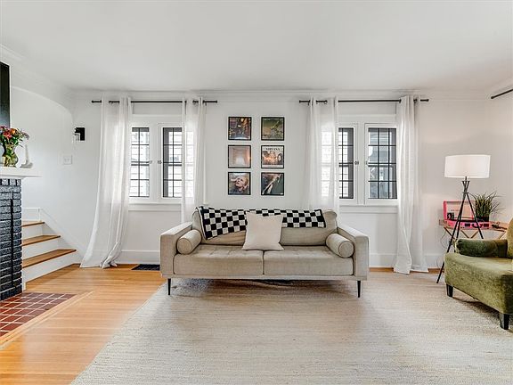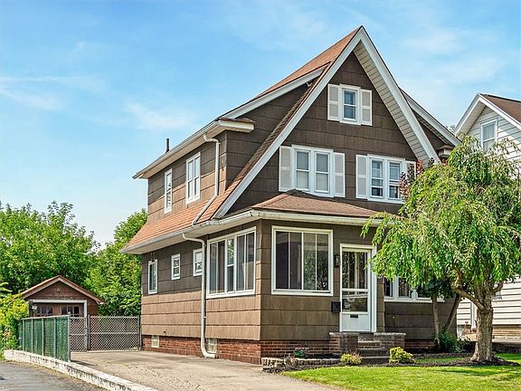 Welcome to this Charming old-style house! Walk onto the 3 season enclosed front porch with storm windows, enter through the Craftsman style solid door to the original tile foyer that leads to the interior of this enchanting home that’s been painted and upgraded throughout to enhance the beauty of this cozy home. Original hardwood floors and working fireplace, many built-ins for function and storage, leaded windows. Listed as a 2 bedroom in tax record could easily be transformed to a 3 bedroom, large walk up attic ready to be converted to additional living space. Partially finished basement with glass block windows and plenty of storage. Complete with central air and a fenced in backyard. Appliances currently in working order being sold as-is, garage door will be addressed before closing.