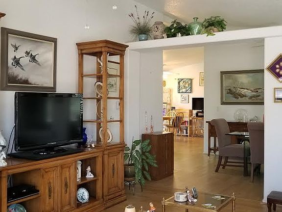 More pictures coming soon! This 2002 very nicely designed home has beautiful laminate flooring except in the bedrooms and walls are all wall board with cutouts to show the other rooms. It is beautifully light and airy and offers views from the windows of the southwestern and western mountains. There is an extra refrigerator in the laundry room, gas stove and an open kitchen design. There are sliding glass doors leading out to the spacious covered patio. The walk in closet in the master is a dream! Huge! And the cabinets in the bathrooms are plentiful. The garage is also wall boarded and very well maintained. Truly a home you can buy and move right in!