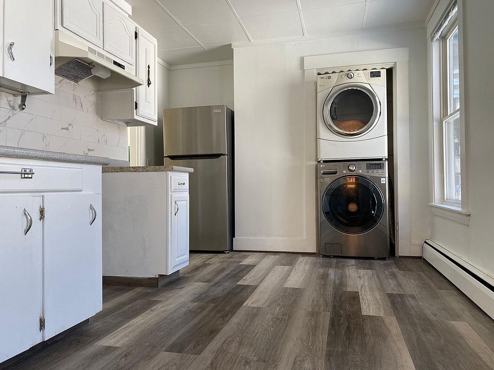- Address: 127 High St, South Paris, ME - Ready for rent now. - 1 Bedroom + 1 Bath + 1 Kitchen + Living room. - 3 parkings - Appliances: Fridge, Stove (will have when move in), Washer + dryer included. - Tenant pay utilities: electric + hot water. - Landlord pay heat, snow plowing, trash, lawn maintenance. Requires: - One year lease + references. - Credit score 600, $29 credit & back ground application through Zillow (only charged if i get to your application). - first month + 1 month security due at signing (total $2100). - Pet friendly. Tenant pay more + $50/month for pet. - Tenants insurance. - Send me message to get application. Everyone over the age of 18 must complete the application.