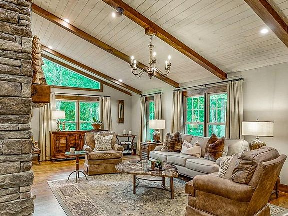 Exquisite beauty and utmost privacy define this extensively remodeled residence, sited on 2.5 picturesque wooded acres that await your personal landscaping touch. Experience the enhanced views and abundant natural light from the new skylights above the kitchen and living area. A massive, double-sided stone fireplace separates the living and dining areas. Unwind on the back porch, where you can grill and lounge by the gas fireplace. High speed internet and a brand new generator for uninterrupted power offer comfort and peace of mind. This three bedroom, three bath home with a separate in-suite downstairs is a "must see." Do not let this opportunity pass you by!